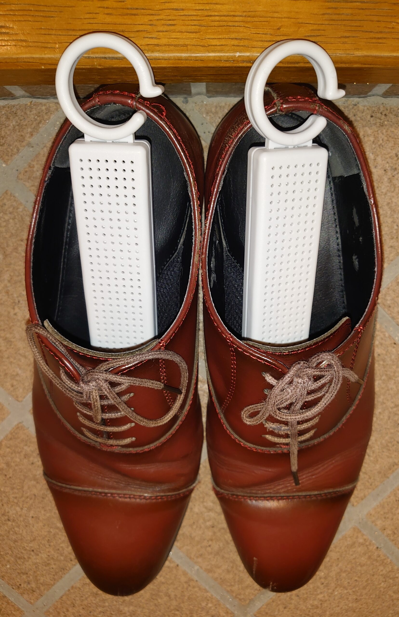 スティックの形状なので靴に挿すだけ。クローゼットならポールに引っ掛けられるようにフックがあるので、引っ掛けるだけ。